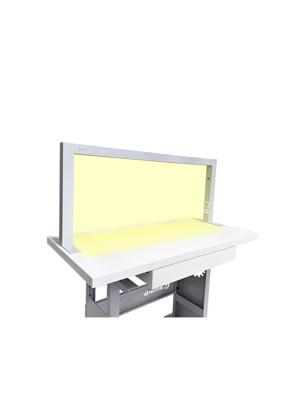 Electric columns are present for adjusting the working position (sitting/standing) from 79 cm to 120 cm.