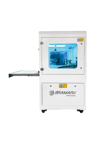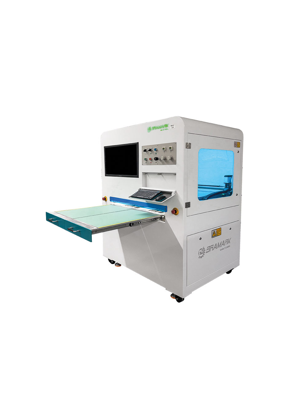 Questa macchina incorpora un brevetto di proprietà di BRAMAC: metodo per la marcatura non a contatto di riferimenti su un articolo piatto e sistema che attua tale metodo.